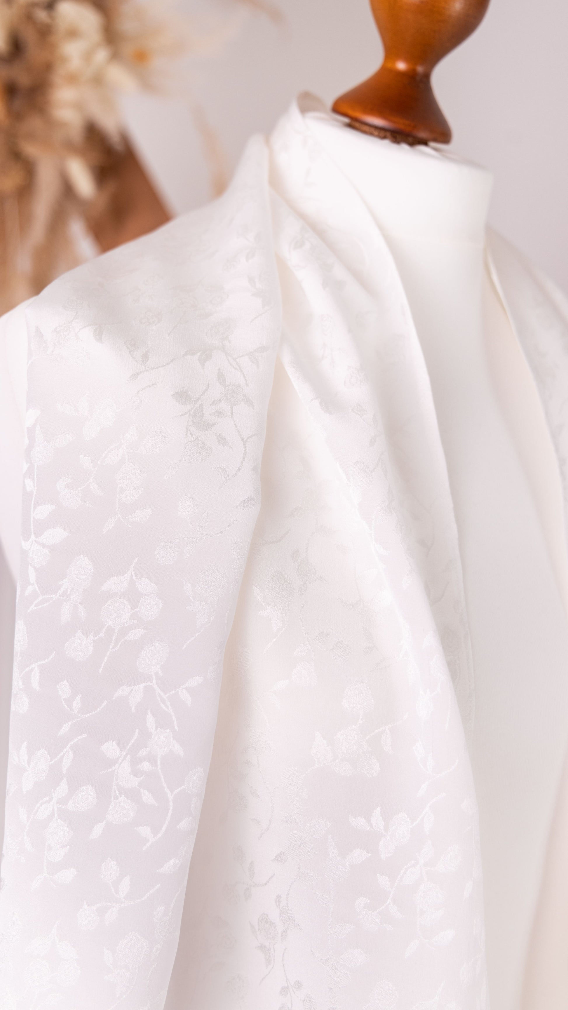 Seidenschal Rosen Jacquard • Natürliche Peace Silk • 100% Seide • Naturweiß